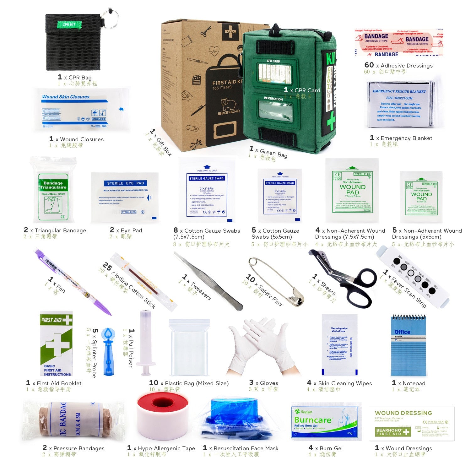 165 Pcs First Aid Kit 3 Section Large Size Portable Emergency Trauma Bag