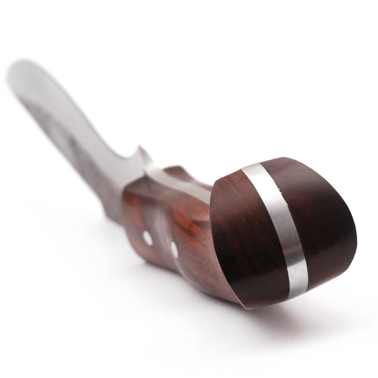 Meet the Big Game Hunter, a Kukri machete designed for serious outdoor pursuits. This full tang blade, forged from high carbon steel, is not just sharpened—it's honed to perfection, ready for all your hunting needs. The textured finish not only adds a cool aesthetic but also serves as a rust-resistant shield, ensuring your blade maintains its rugged charm even after heavy use. The full tang is securely sandwiched between two thick mounts crafted from polished Heartwood, providing durability and a comfortable grip. The larger end of the handle serves dual purposes—perfect for hammering in tent stakes or tackling more formidable tasks. A Kukri isn't just a knife; it's a versatile companion for hunting trips. From cutting and slashing to chopping and hammering, it excels in a variety of tasks. With an overall length of 15.5 inches, the multi-purpose design makes it an indispensable tool for every outdoor enthusiast. Store your Big Game Hunter Kukri in the high-quality brown leather sheath, complete with a belt loop and antiqued brass snap closure, ensuring it's ready whenever adventure calls.