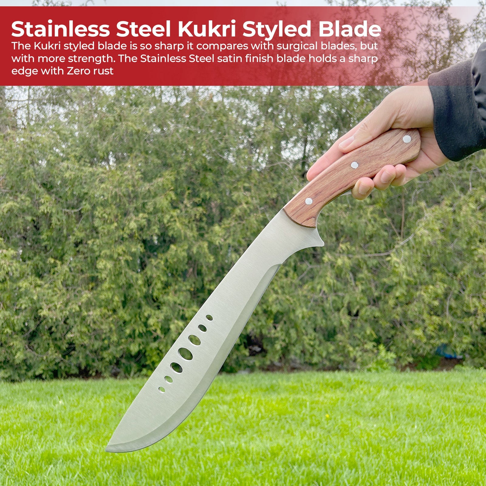• Secure Grip: Natural wood handle with three-rivet construction