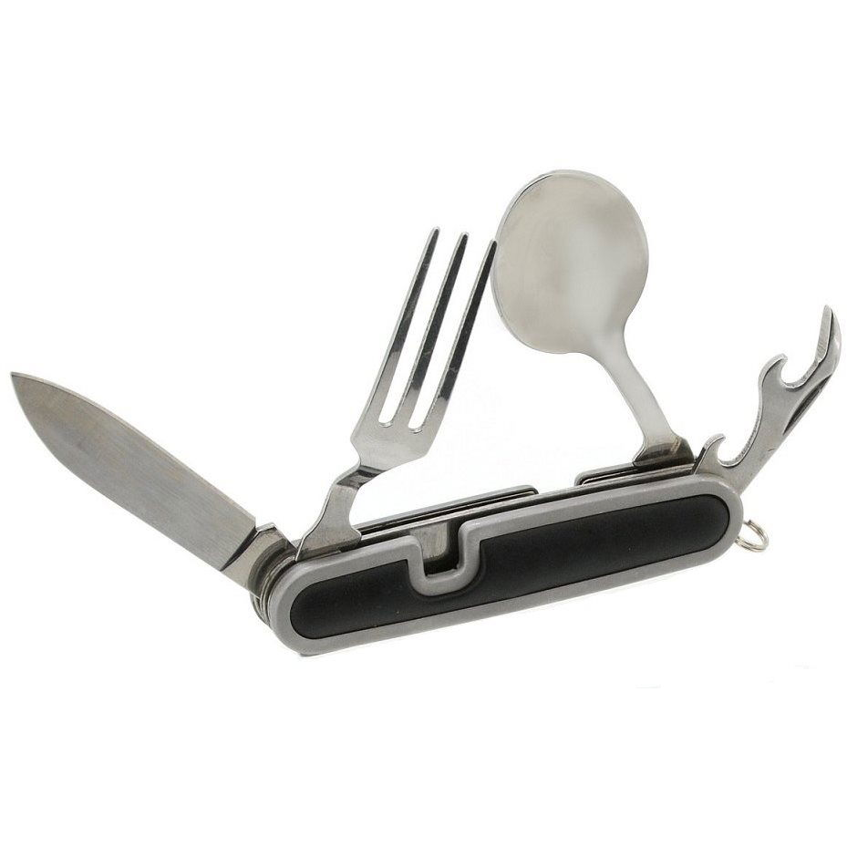 Zsebkés - multifunkciós, utazó / turisztikai, a felszerelés része kulcstartó, konzervnyitó és palacknyitó, acél keménysége 48 HRC, penge hossza 6 cm, bezárt kés hossza 8,8 cm