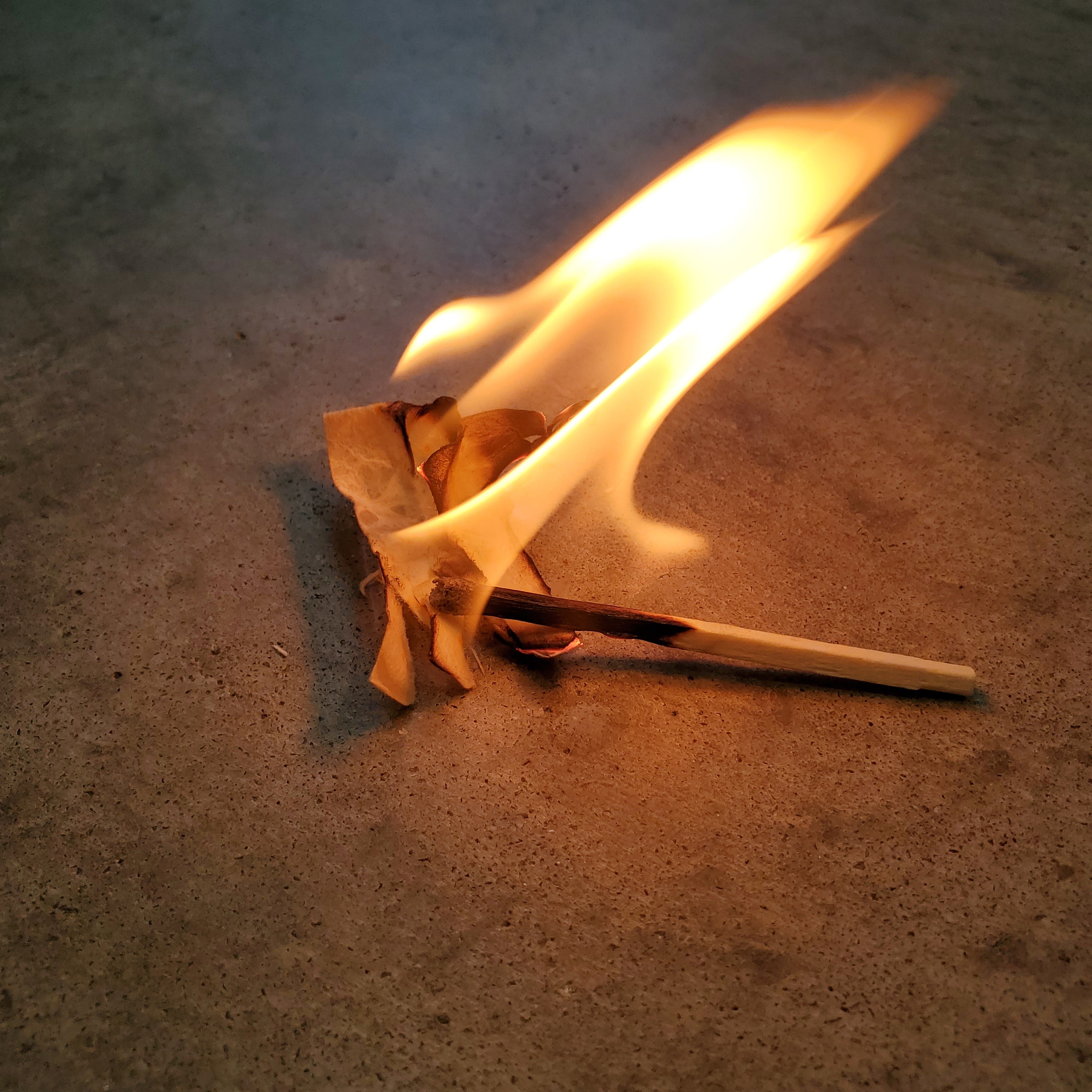 9. Tinder Parchment: Fibrous wax infused parchment. Tear paper, expose and fluff tinder, light with firestarter.