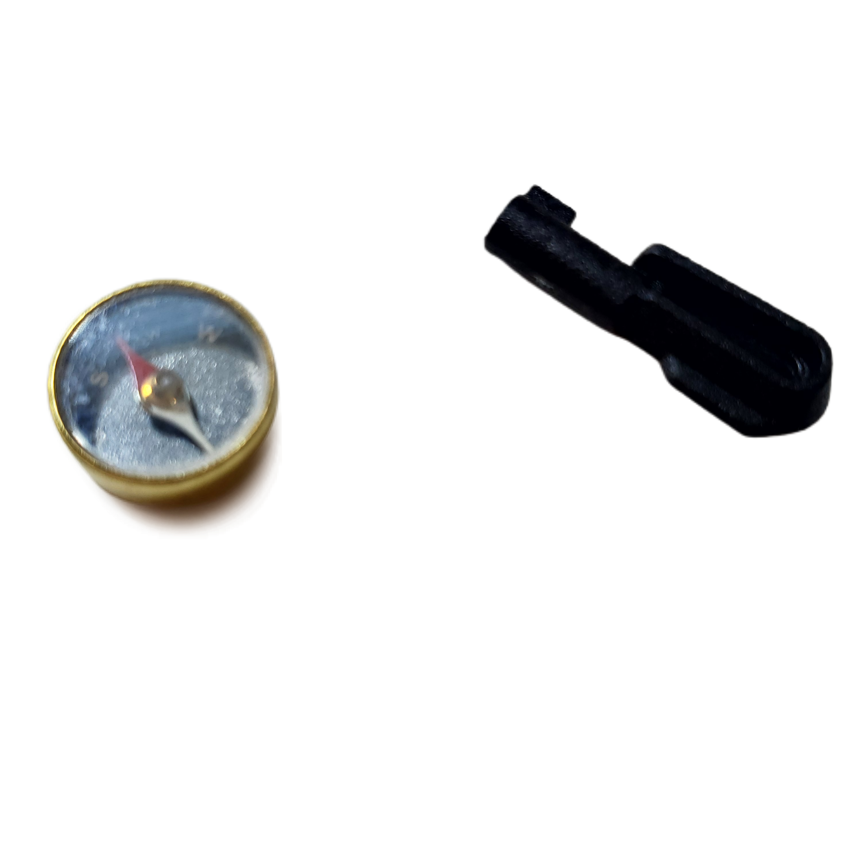 2. Thumb Tac Compass: waterproof, shock resistant, glass dome crimped to brass housing. Operable in 0°-160°F ranges. Weight 1 gram, size 11mm x 4.5mm.