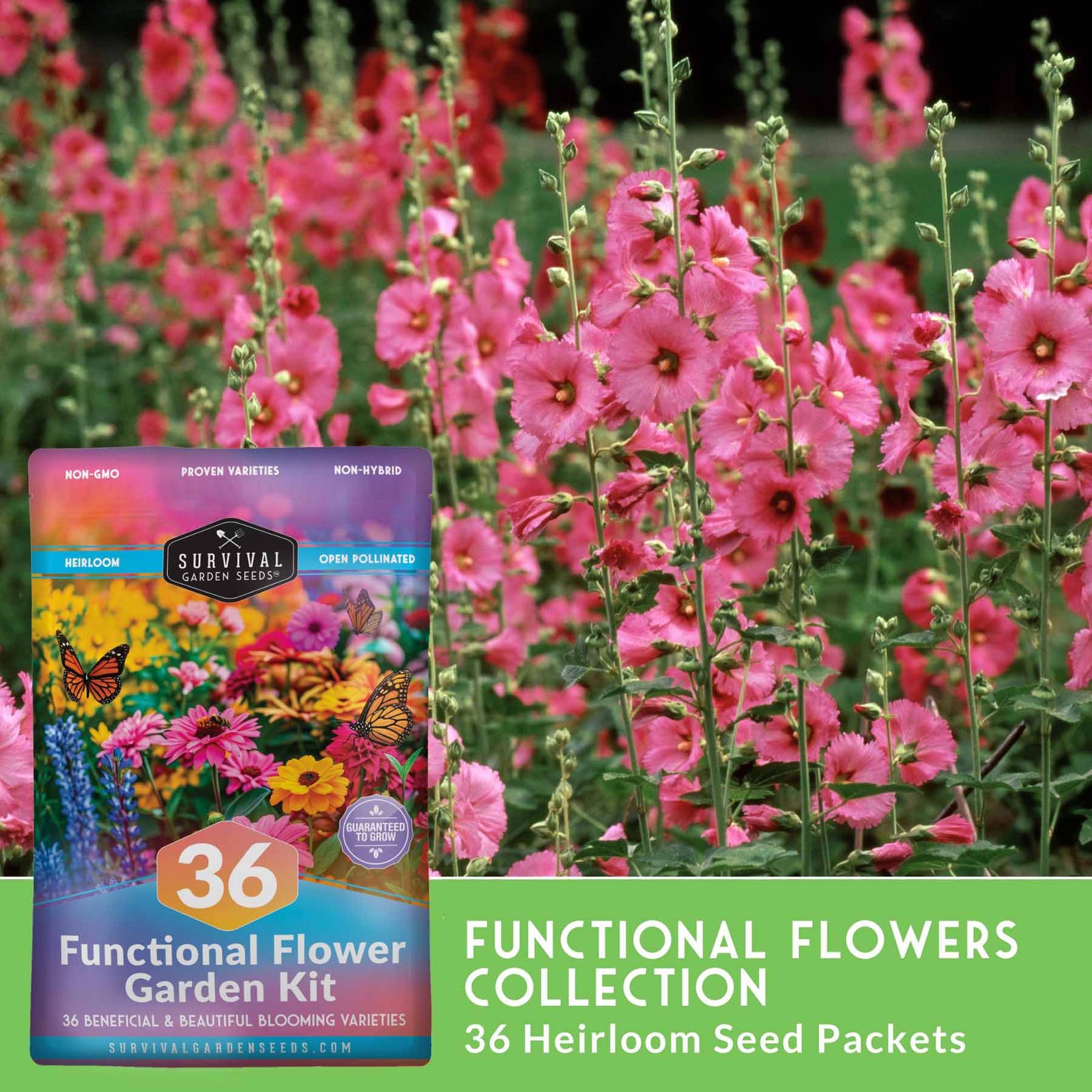 We've named this our "Functional Flowers" Collection because this unique collection offers the perfect balance of beauty and function. Inside, you’ll find an assortment of companion plants, cutting flowers, native wildflowers, edible flowers, medicinal tea herbs, soil conditioners, full sun to shade-tolerant flowers, and even options for drought-resistant xeriscape gardens.