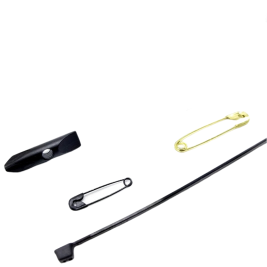 5. Black Steel Plated Security Pin: (heavy duty safety pin) TIPS: Provide sustenance by forming into a fish hook. Remove a splinter. Hold two items together. Fashion an arm sling.