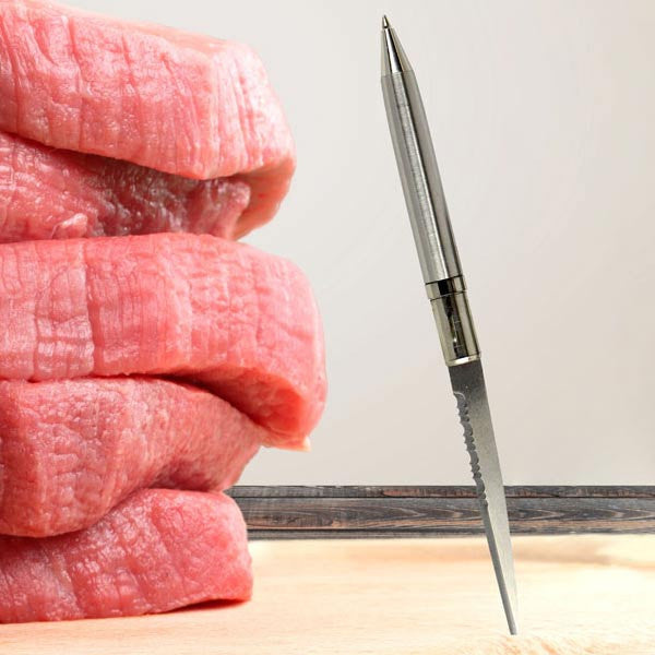 POWER OF THE PEN. This Tactical Pen Knife is a prepper's dream when it comes to preparedness. Whether you find yourself in the woods, off-grid or down a dark alley, this tactical pen is by far the most compact survival tool for preppers that want to be prepared. This survival pen is so effective it's been banned in two states* (CA and NY)! What appears to be an ordinary pen is really a tactical knife with serrated blade.